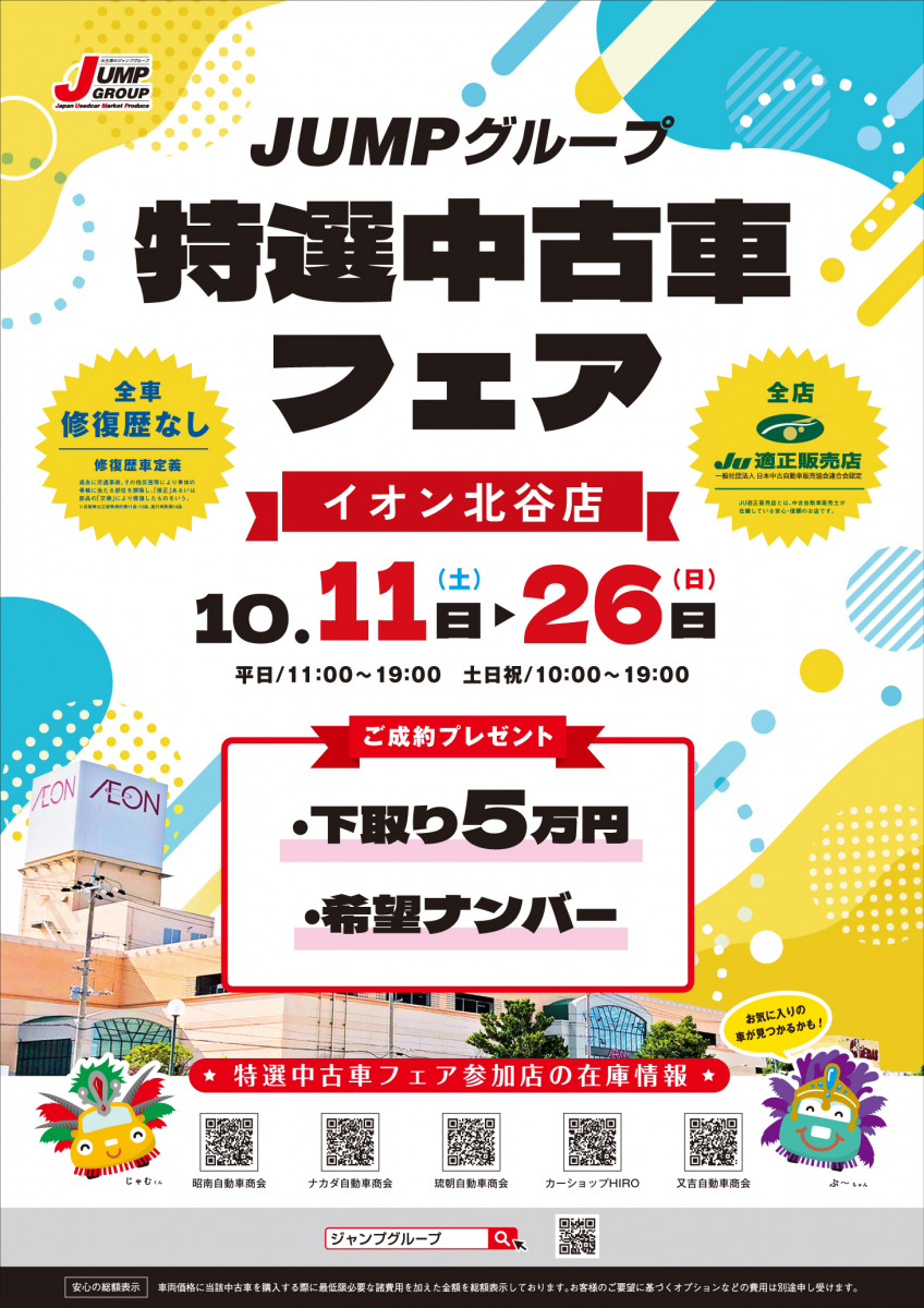 10月11日~イオン北谷にて開催!JUMPグループ特選中古車フェア